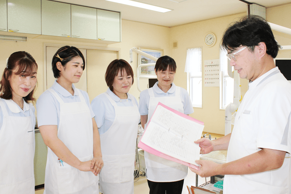 歯科衛生士の皆さんには、予防処置やメンテナンスだけでなく、患者さまとの信頼関係を築く上でも中心的な役割を担っていただきたいと考えています。